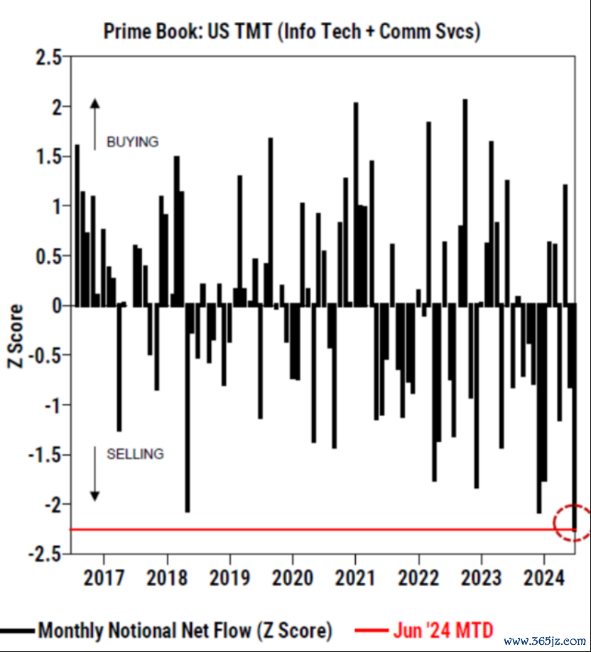 今年6月份,对冲基金在美国TMT领域的净卖出已经创下了高盛PB记录以来最高纪录。